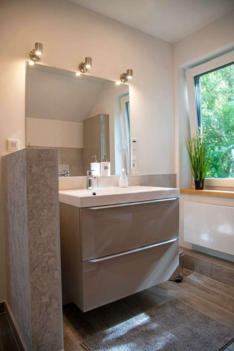 Kappeln sehen sie zwar nicht aus dem Bad, dafür fühlen Sie sich auf jeden Fall auf Anhieb wohl in dem großzügigen und hellen Band mit neuester Keramik Abteilung.