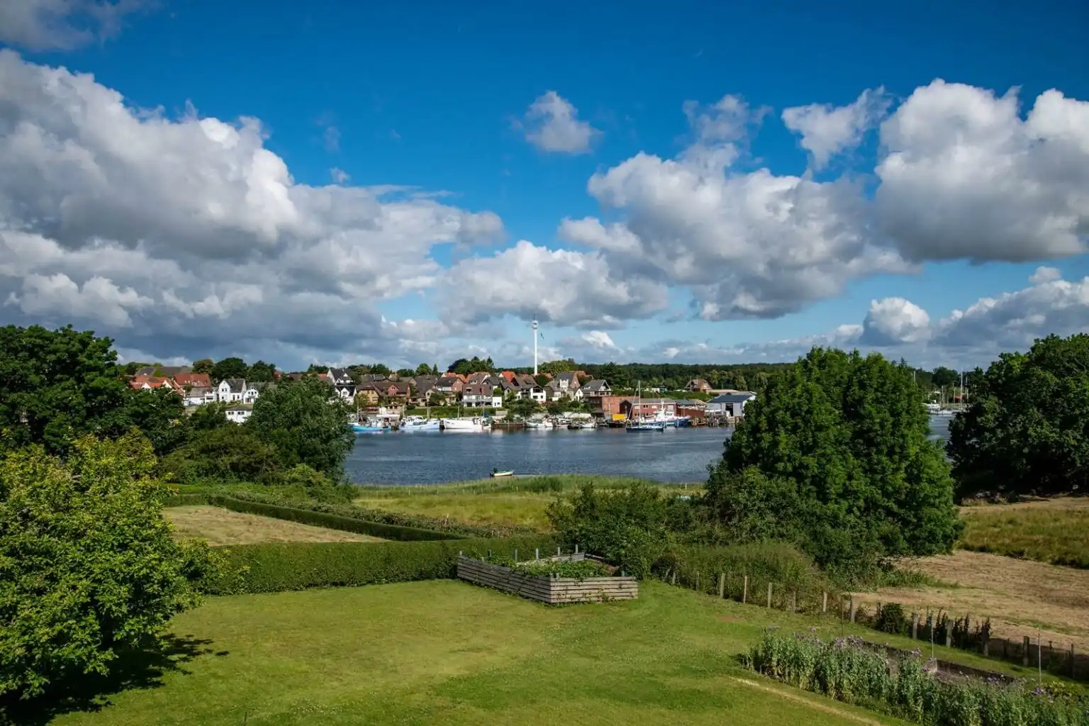 Der Blick auf Kappeln und den Hafen an der Schlei ist aus unserer Sicht immer wieder wunderschön. Zählen Sie die vorbeiziehenden Schiffe und hören Sie die Sirenen der Ausflugsschiffe.